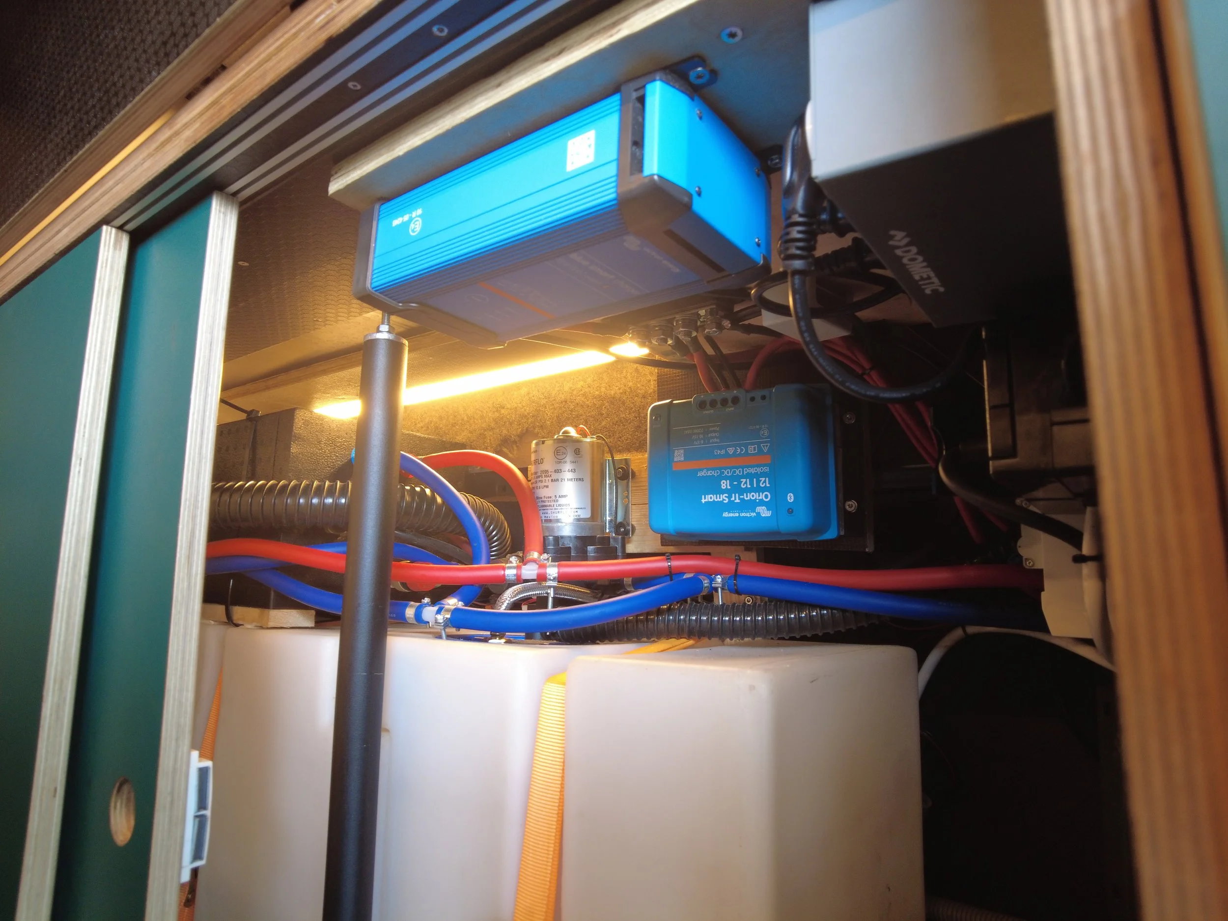 Bevat een vast bed, keuken met gasstel en oven, dakventilator, dakraam, koelkast / vriezer, verwarming, volledige isolatie, maximale stroomvoorziening, zonnepanelen, toilet / douche cabine, voldoende opslag en draaistoelen.